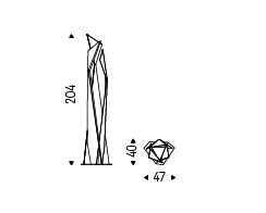 Floor lamp with frame in matt grey (OP30), matt white (OP71) or embossed titanium (GFM11) varnished steel and black base. In 110V version bulb not included.