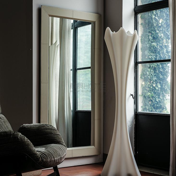 Mirror with frame covered in leather as per sample card. Mirror is equipped with plates for both horizontal and vertical installation.