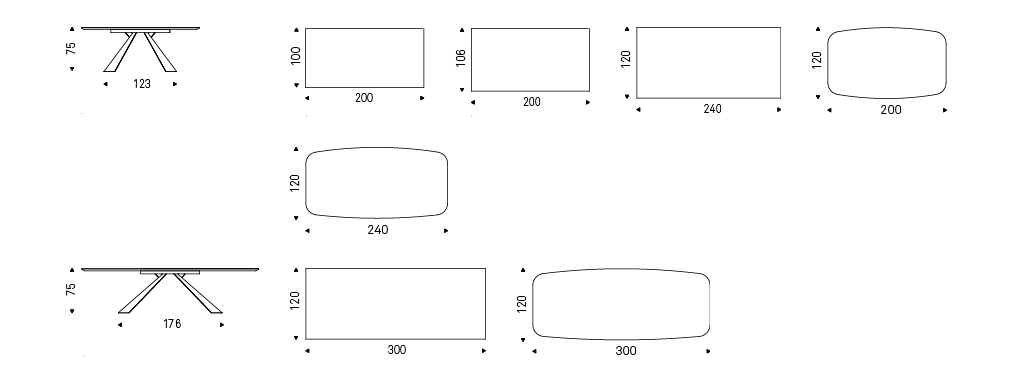 Extendible table with base in titanium (GFM11), bronze (GFM18), graphite (GFM69), white (GFM71) or black (GFM73) embossed lacquered steel. Marmi ceramic top and extensions in Calacatta (KM01), Alabastro (KM02), Ardesia (KM04), matt Golden Calacatta (KM05), glossy Golden Calacatta (KM06), matt Portoro (KM07), glossy Portoro (KM08), glossy Sahara Noir (KM09), Emperador (KM10), Makalu (KM11), Breccia (KM12) or Arenal (KM13).