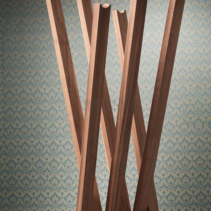 Coat hanger in Canaletto walnut (NC) or burned oak (RB) and base in Travertine (TN).