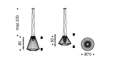 Ceiling lamp with frame in matt black (OP17) steel and black caoutchouc extensible lampshade. Bulb included.