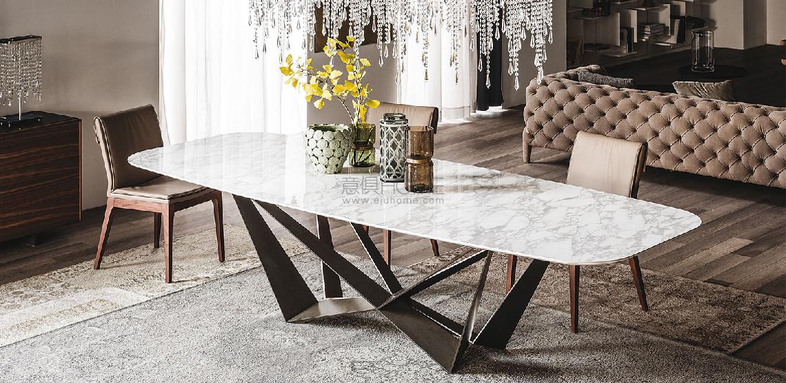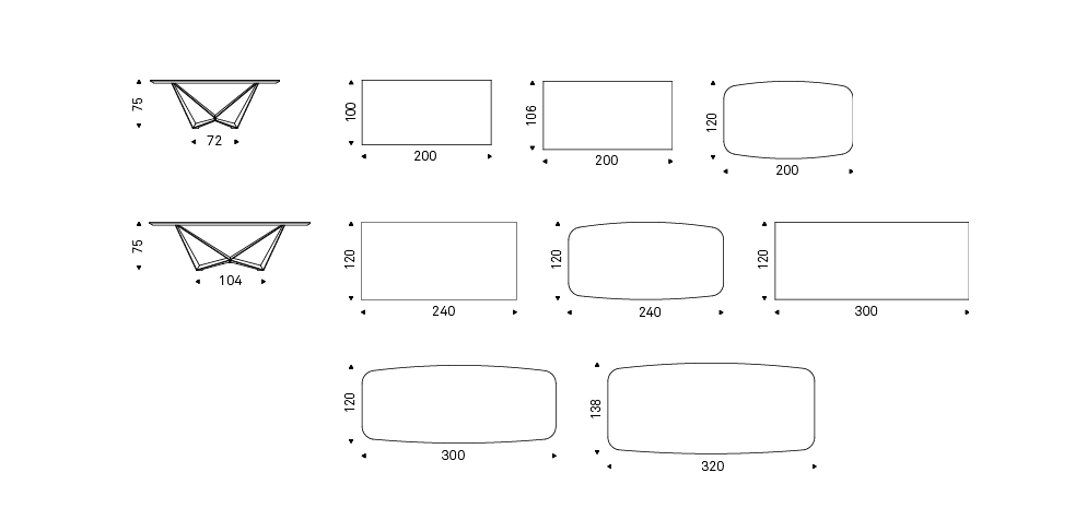 Table with transparent varnished metal base (OP0), titanium (GFM11), bronze (GFM18), graphite (GFM69), white (GFM71) or black (GFM73) embossed lacquered steel or Brushed Bronze lacquered steel. Top in ceramic Marmi Calacatta (KM01), Alabastro (KM02), Ardesia (KM04), matt Golden Calacatta (KM05), glossy Golden Calacatta (KM06), matt Portoro (KM07), glossy Portoro (KM08), glossy Sahara Noir (KM09), Emperador (KM10), Makalu (KM11), Breccia (KM12) or Arenal (KM13).