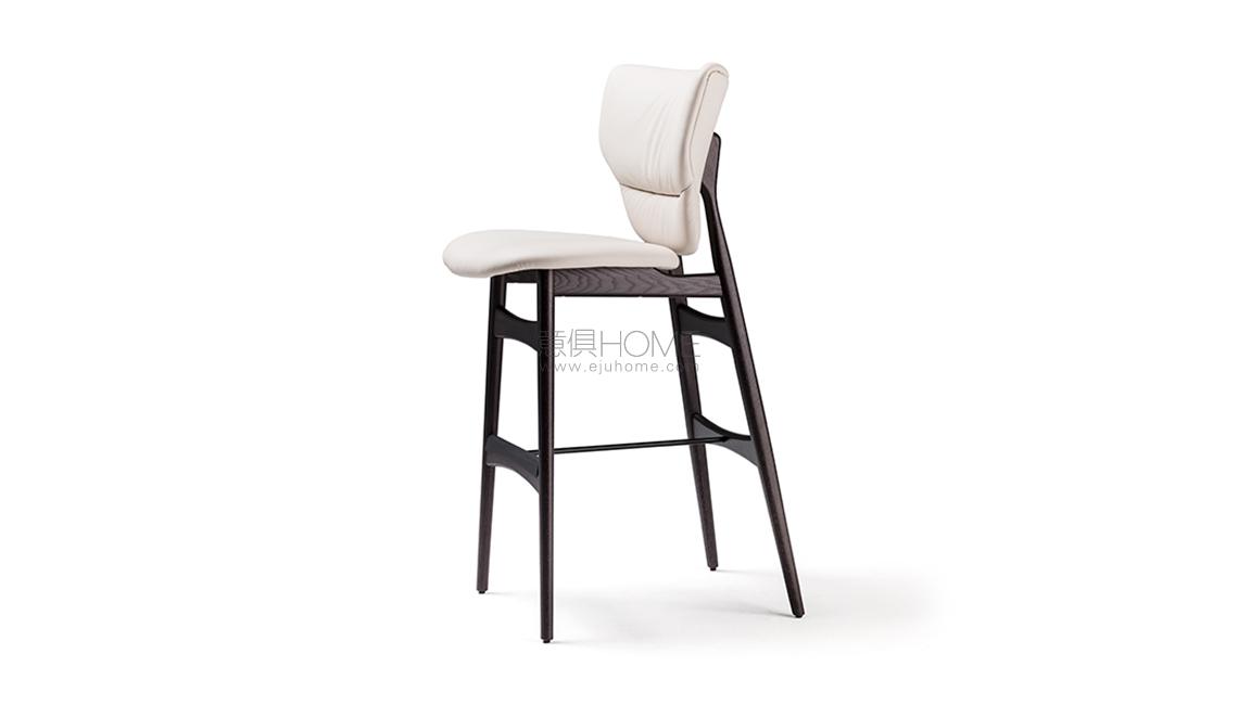 Stool with frame in Canaletto walnut stained ashwood (frNC), burned oak stained ashwood (frRB) or open pore matt white (fr71) or black (fr73) painted ashwood. Seat and back upholstered in fabric, synthetic nubuck, synthetic leather or soft leather as per sample card.