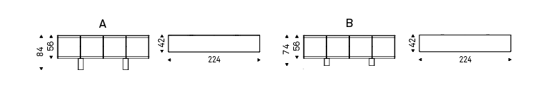 Sideboard with frame and feet in black embossed lacquered steel (GFM73), doors and sides in fumé glass with stripes in black painted glass. Top and bottom in black painted frosted glass, internal back covered and quilted in soft leather or synthetic leather as per sample card. Internal shelf in fumé glass. LED light.