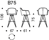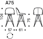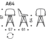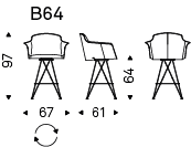 Swiveling stool with or without arms with transparent varnished steel (OP0), graphite (GFM69), white (GFM71) or black (GFM73) embossed lacquered steel frame. Seat and back upholstered in fabric, synthetic nubuck, micro nubuck, synthetic leather or soft leather as per sample card. The cover is not removable.