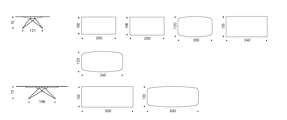Table with base in titanium (GFM11), bronze (GFM18), graphite (GFM69) or black (GFM73) embossed lacquered steel. Marmi Calacatta (KM01), Alabastro (KM02), Ardesia (KM04), matt Golden Calacatta (KM05), glossy Golden Calacatta (KM06), matt Portoro (KM07), glossy Portoro (KM08), glossy Sahara Noir (KM09), Emperador (KM10), Makalu (KM11), Breccia (KM12) or Arenal (KM13) ceramic top.