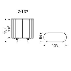 The curved transparent glass sides are interspersed with vertical metal inserts, which give rhythm to the composition and allow a glimpse of the internal glass shelves. But the real detail that differentiates it is the refined foot, composed of two metal elements forming a Y that rests gracefully on the ground. The wooden doors are made with diagonal slats that highlight the attractive natural grain of the wood. This modern sideboard is made with 2 or 4 doors, to adapt naturally to any space in the house.