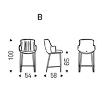 The soft folds that decorate the interior of the backrest contrast with the taut and rounded shell. In the lower part of the backrest, the deep structure and the connection of the legs emphasise the softness of the curves. A design with soft lines that envelop the body, support the posture and make the modern dining room a cosy environment to feel at home in.