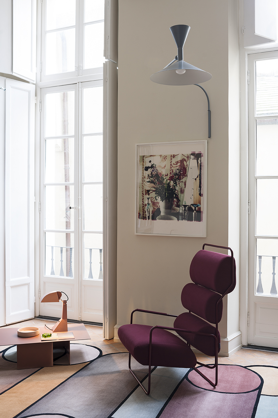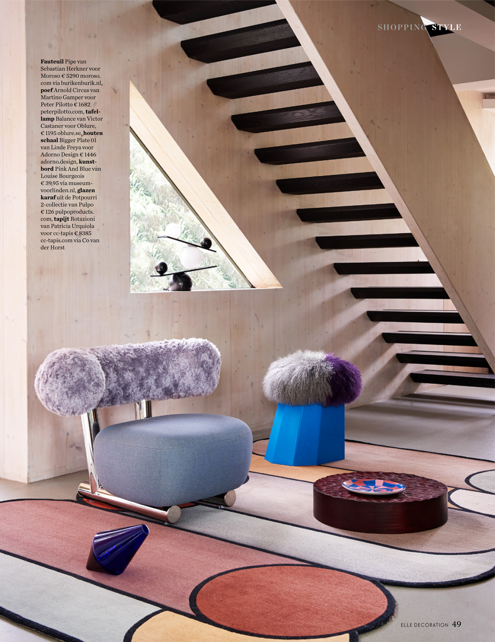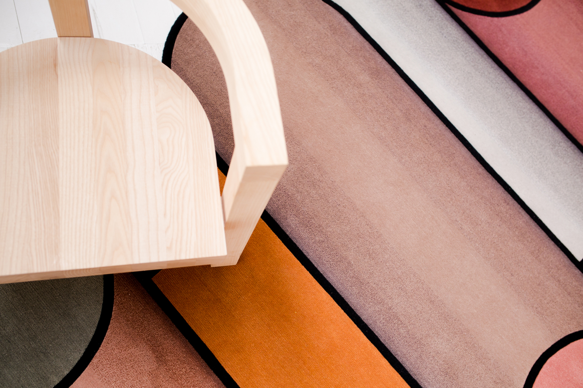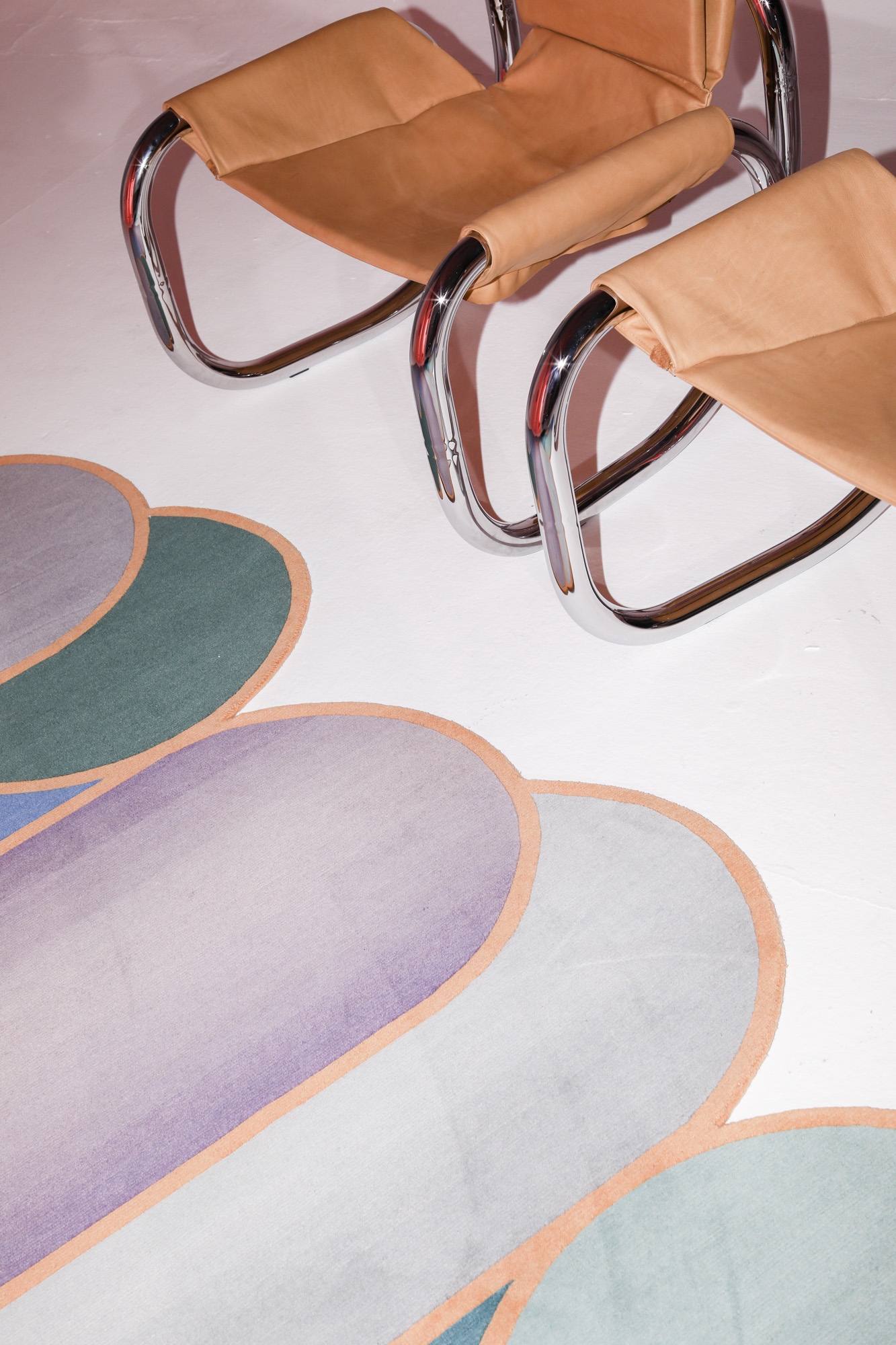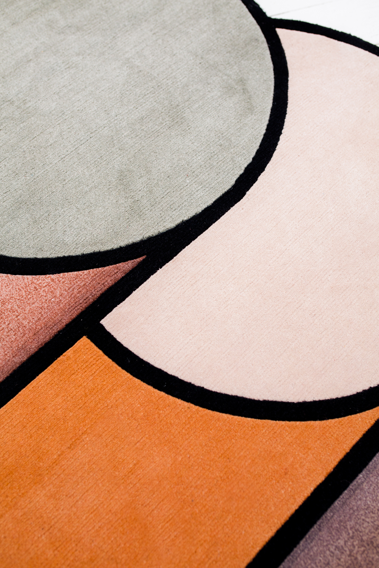 Rotazioni plays on the repetition of overlapping cylindrical forms that emphasize the circle as the matrix of the design. A scale of pastel colors and chromatic contrasts insinuate the gradient on the surface of the cylinders creating a three-dimensional effect. This enhances the volume and dynamic composition of the design: from this “Rotazioni” which translated means “Rotations” was born.
