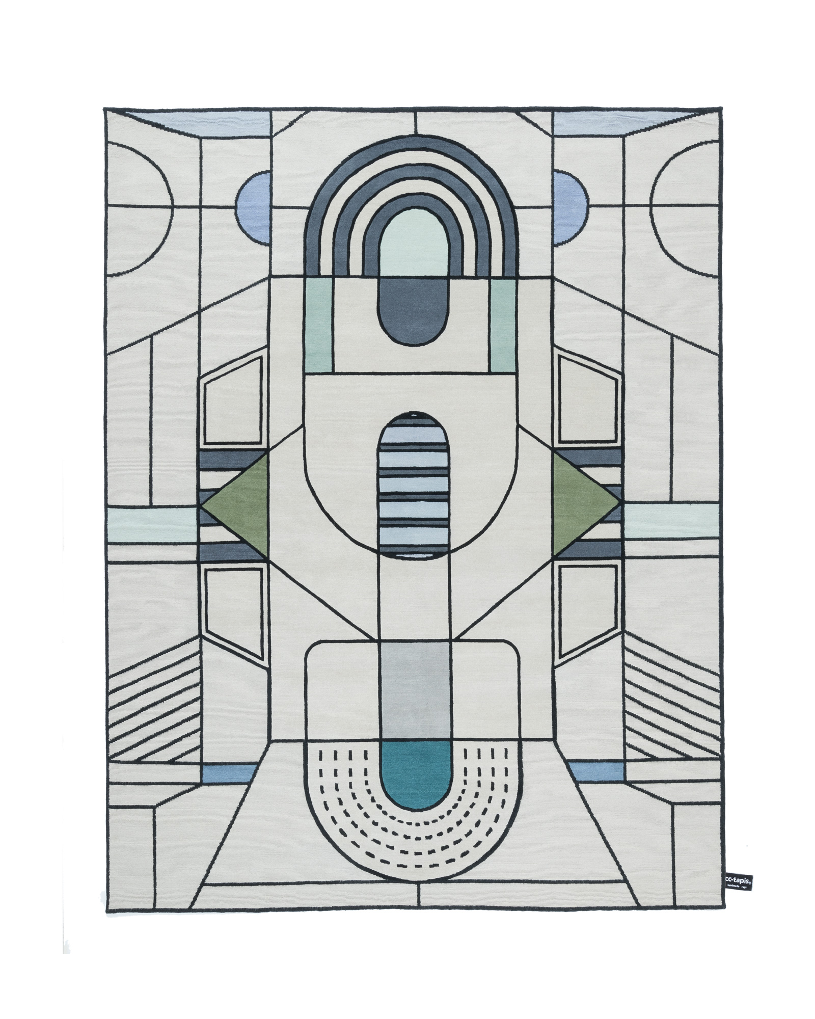 In the Flatlandia Collection by Elena Salmistraro rugs are transformed into two-dimensional universes inhabited by geometric shapes, just like in the novel Flatland, the fantastic story in multiple dimensions, written by Reverend Edwin A. Abbott in 1884. Triangles, lines, circles and squares overlap, meet and collide becoming conscious of each other, just as they do in the novel, unaware of the colors and the magic they hold. The collection has two faces; one more tactile and “rough”, the other softer and lighter, one more intense and crowded, the other sober and sublime. A series of rugs which play with contrast emphasizing duality and the craftsmanship involved in their creation. It is no coincidence that the rugs have the names of famous mathematicians: Cartesio, Pitagora and Eulero.