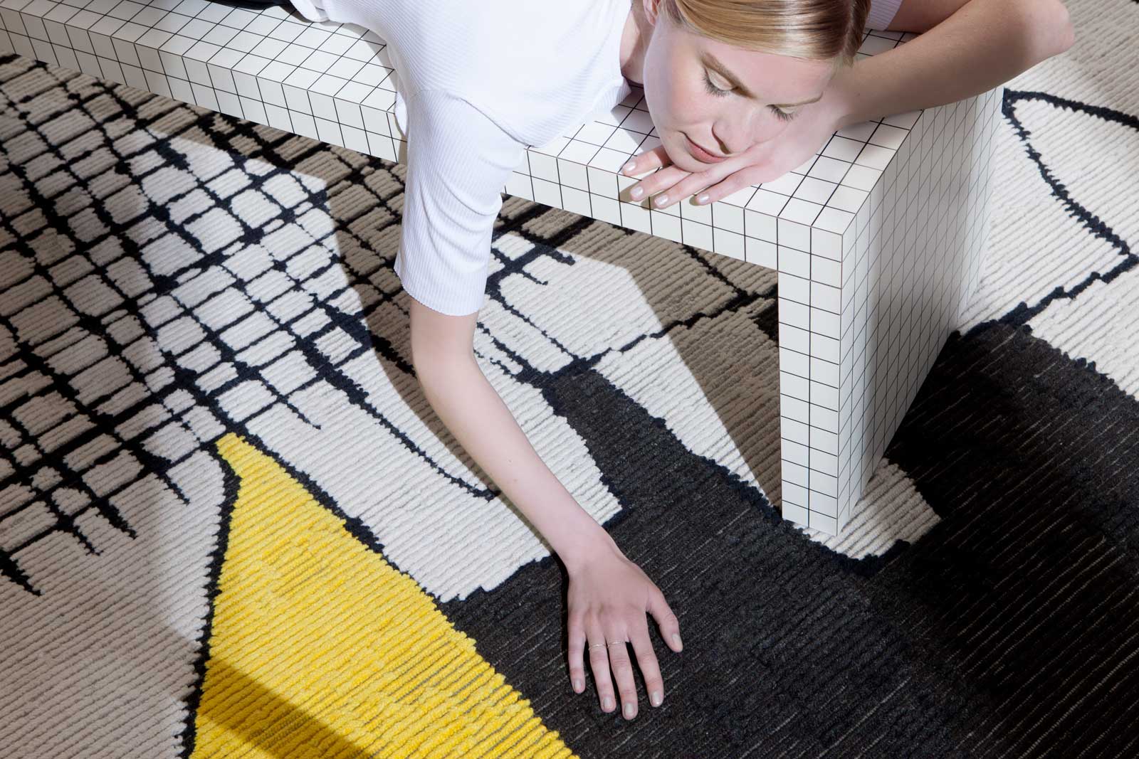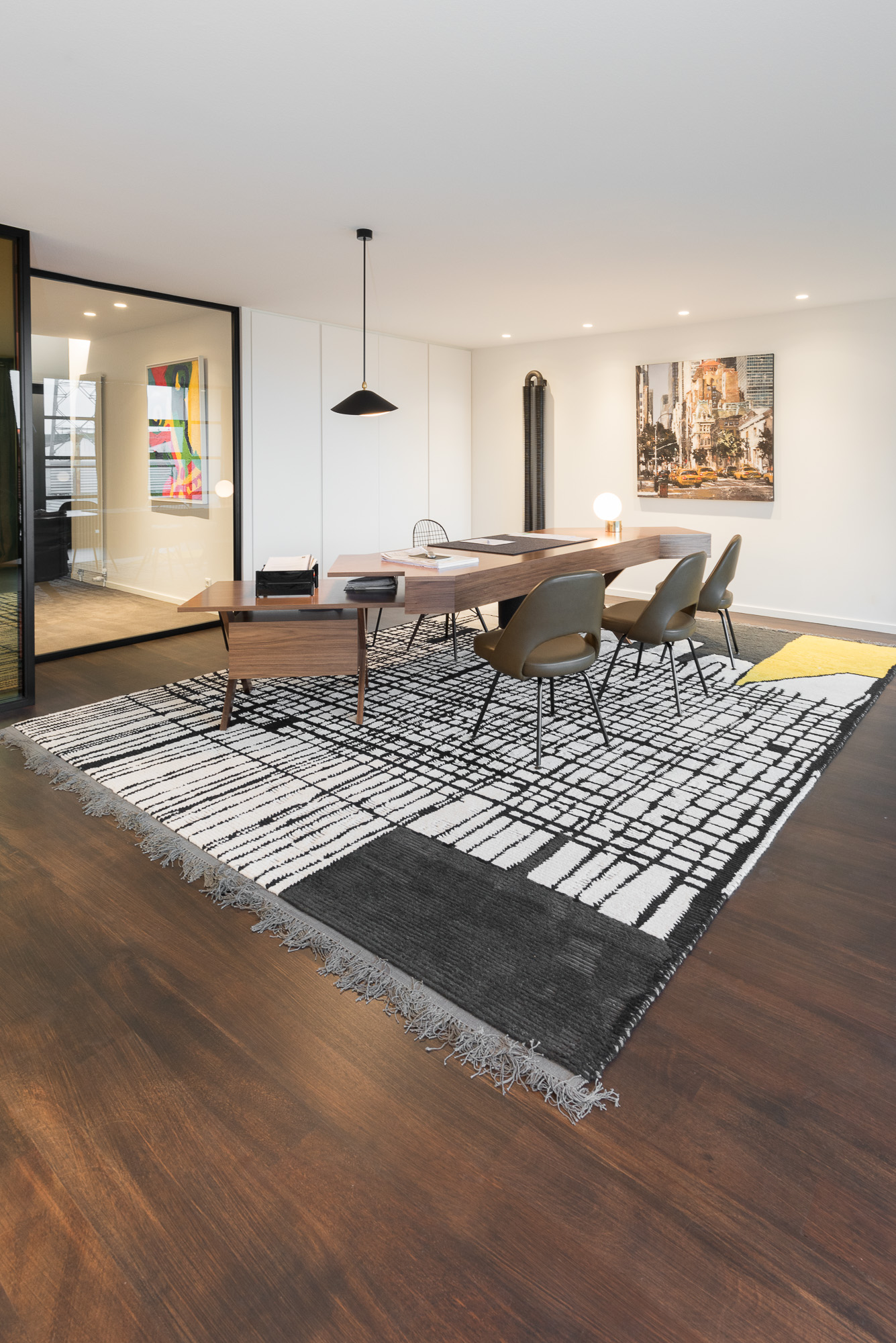 The Oldie Full uses completely dyed Himalayan wool which can be completely customized. Using a special knotting technique created by cc-tapis to create a full pile which is soft and warm to the touch whilst the cotton warp can be dyed in any color which creates a subtle highlight and colorful fringes. After the hand-knotting is finished the artisan cuts some of the knots at random which open, covering the colorful dyed cotton pile creating the beautiful "lived-in" effect which has become the signature feel of the Oldie Collection. Absolutely no chemical or acid washes are ever used during production.