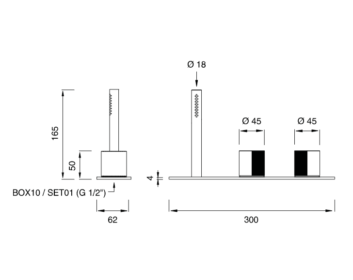 Rim mounted set of 2 mixers with cylindrical hand shower ? 18 mm