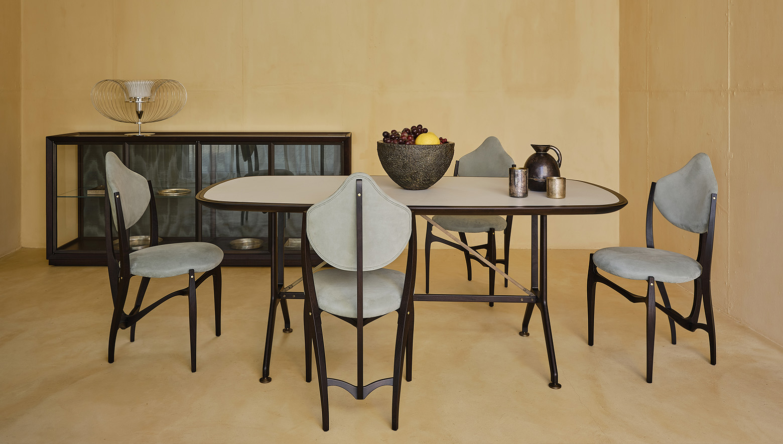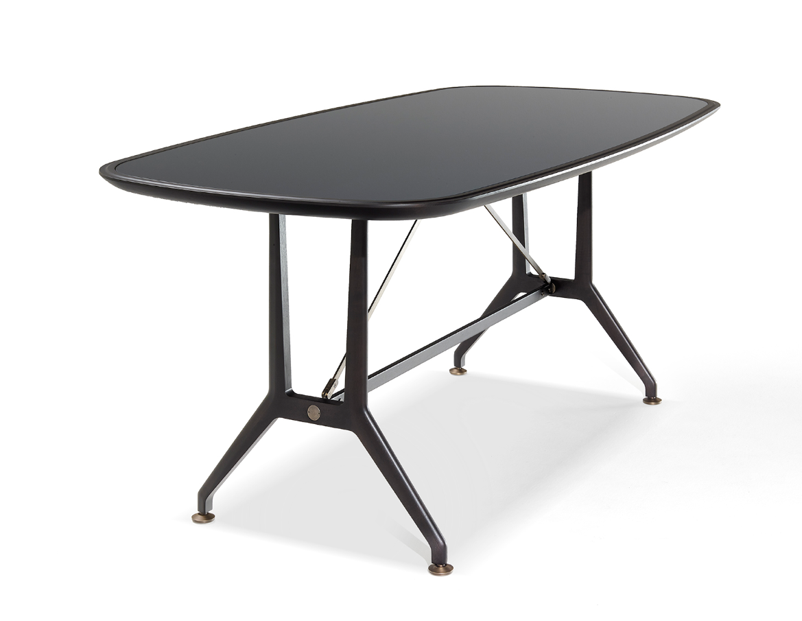 La struttura è caratterizzata da due cavalletti in legno massello attraversati da due tiranti tenditori in ottone posti in diagonale che ricordano le forme del “Sopwith Camel”, uno dei più importanti aerei da caccia biplano del Regno Unito attivi durante la Prima guerra mondiale. Il piano è in legno, vetro retro verniciato o pelle.