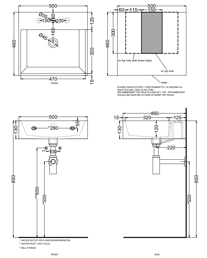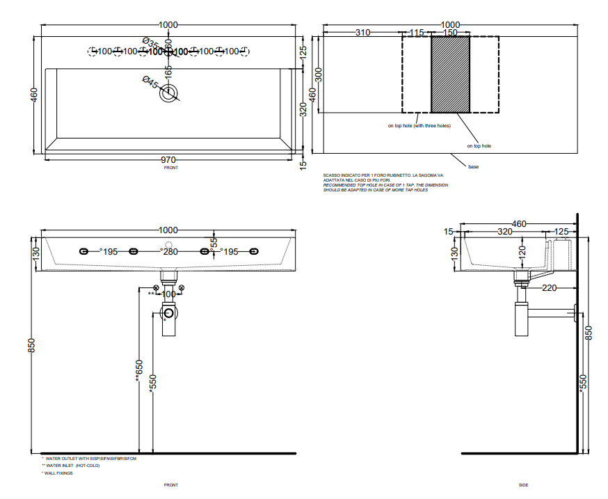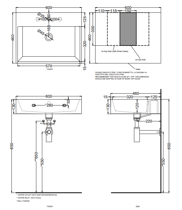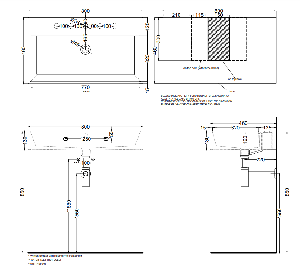 帶溢水口的洗臉盆,適用于懸掛和表面安裝,有各種陶瓷飾面可供選擇。