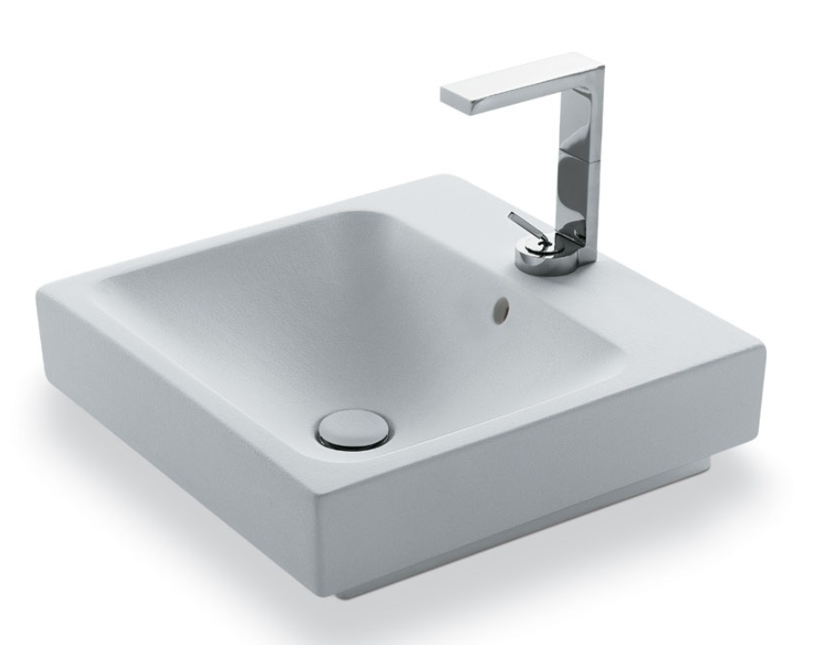 帶溢水口的洗臉盆,適用于懸掛式、臺面式和半嵌入式安裝,提供各種陶瓷飾面。