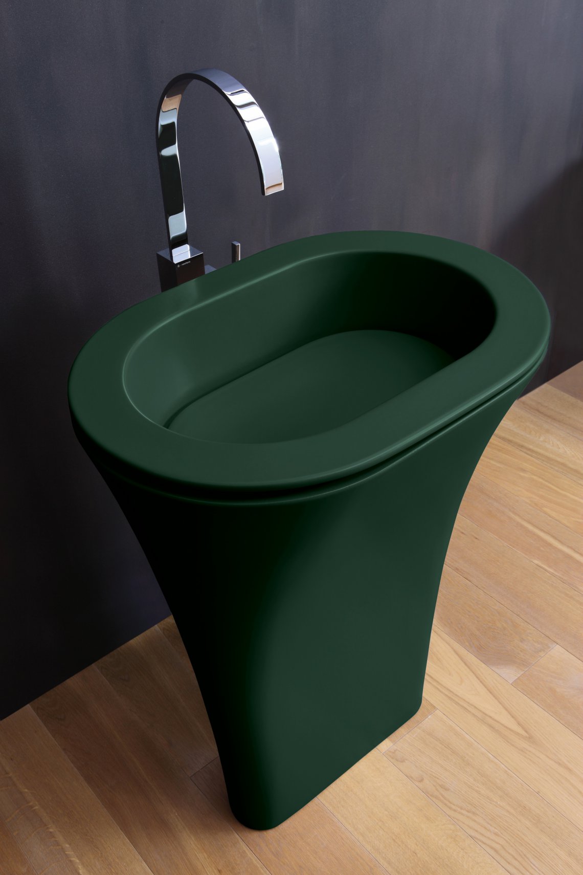 用于中央房間安裝和地板出口的獨立式洗臉盆,有不同的飾面可供選擇。