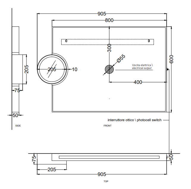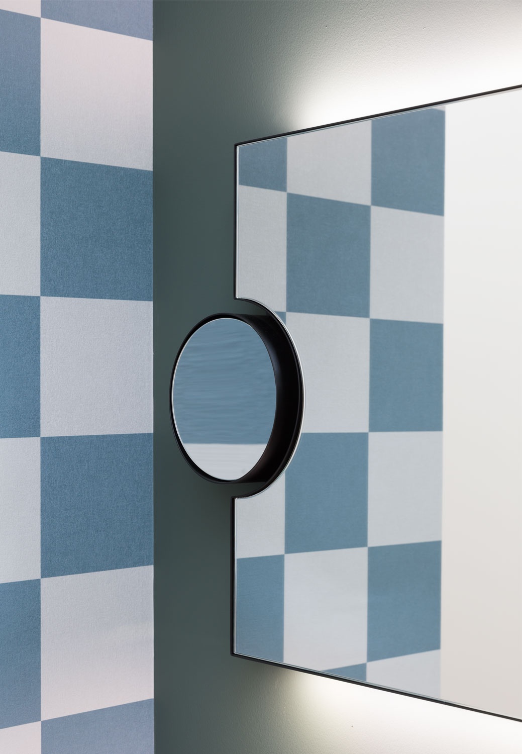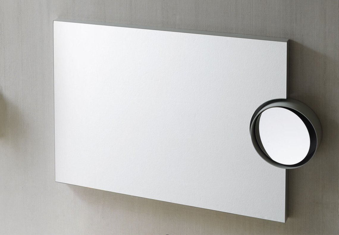 實用的長方形壁鏡,附有圓形側鏡 3 倍放大器,有多種不同的飾面,帶有禮貌的 LED 燈和光學開關。