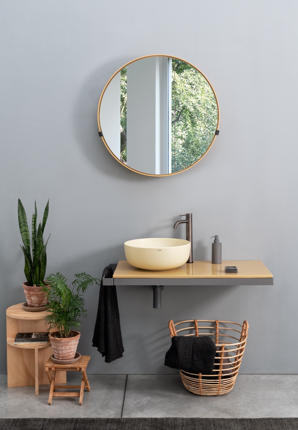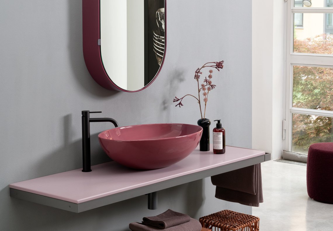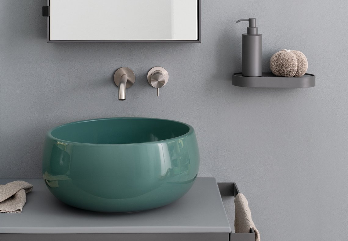 用于懸掛安裝的模塊化系統(tǒng),有多種尺寸,由陶瓷臺面組成,有多種飾面,安裝在涂漆鋼結(jié)構(gòu)上,并可以添加毛巾架作為補充。
