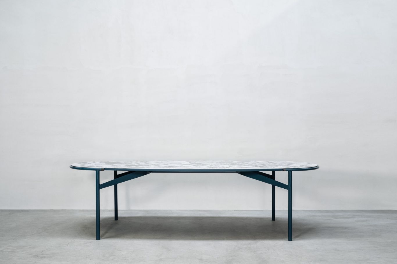 A poco a poco prende forma lo scenario che abbiamo immaginato per la nostra casa moderna, un luogo in cui le forme si assemblano per creare oggetti semplici, di quella semplicità che tipicamente nasce da profondi processi di ricerca. Oggetti lineari, che possano assolvere alla loro funzione ed allo stesso tempo definire una precisa, inequivocabile idea di stile. Telaio metallico, verniciato opaco in 7 colorazioni differenti. Top disponibile in 3 diverse finiture e terminali cromati nelle finiture Standard, Nero e Oro. Per nostra scelta, la materia del top, attraverso le venature del legno o le laccature opache o i disegni della ceramica, si rende finalmente protagonista e domina sulla forma, fino a rendere senza tempo qualsiasi scelta stilistica.