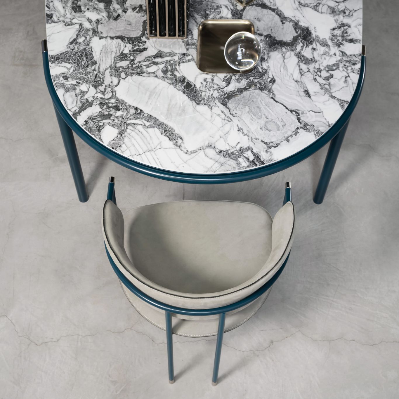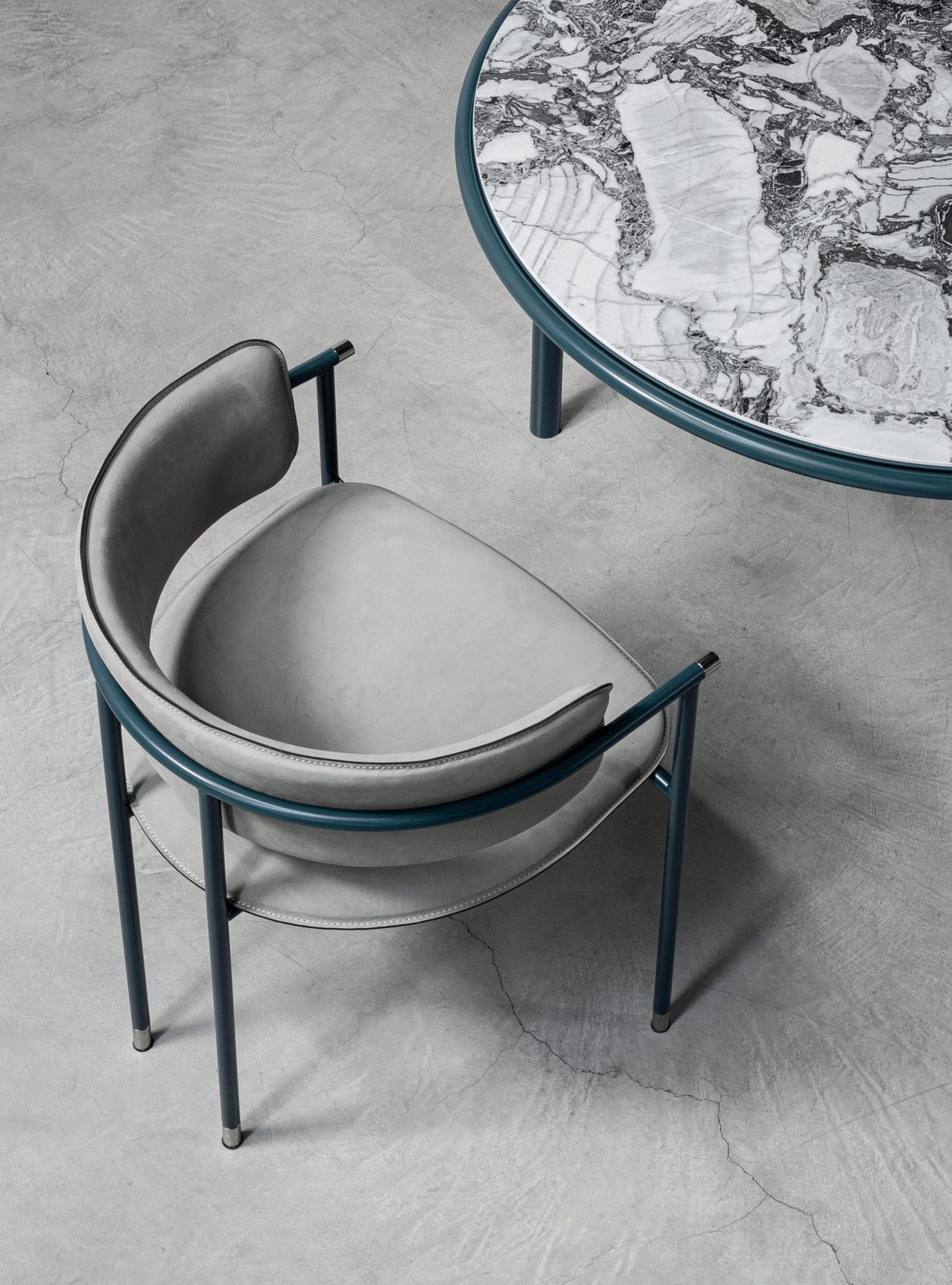 La diversità è nella selezione dei dettagli, nella possibilità di combinare finiture differenti: ben 7 vernici opache per il telaio, 100 colori di pelle per la seduta, 3 diverse cromature per i terminali.