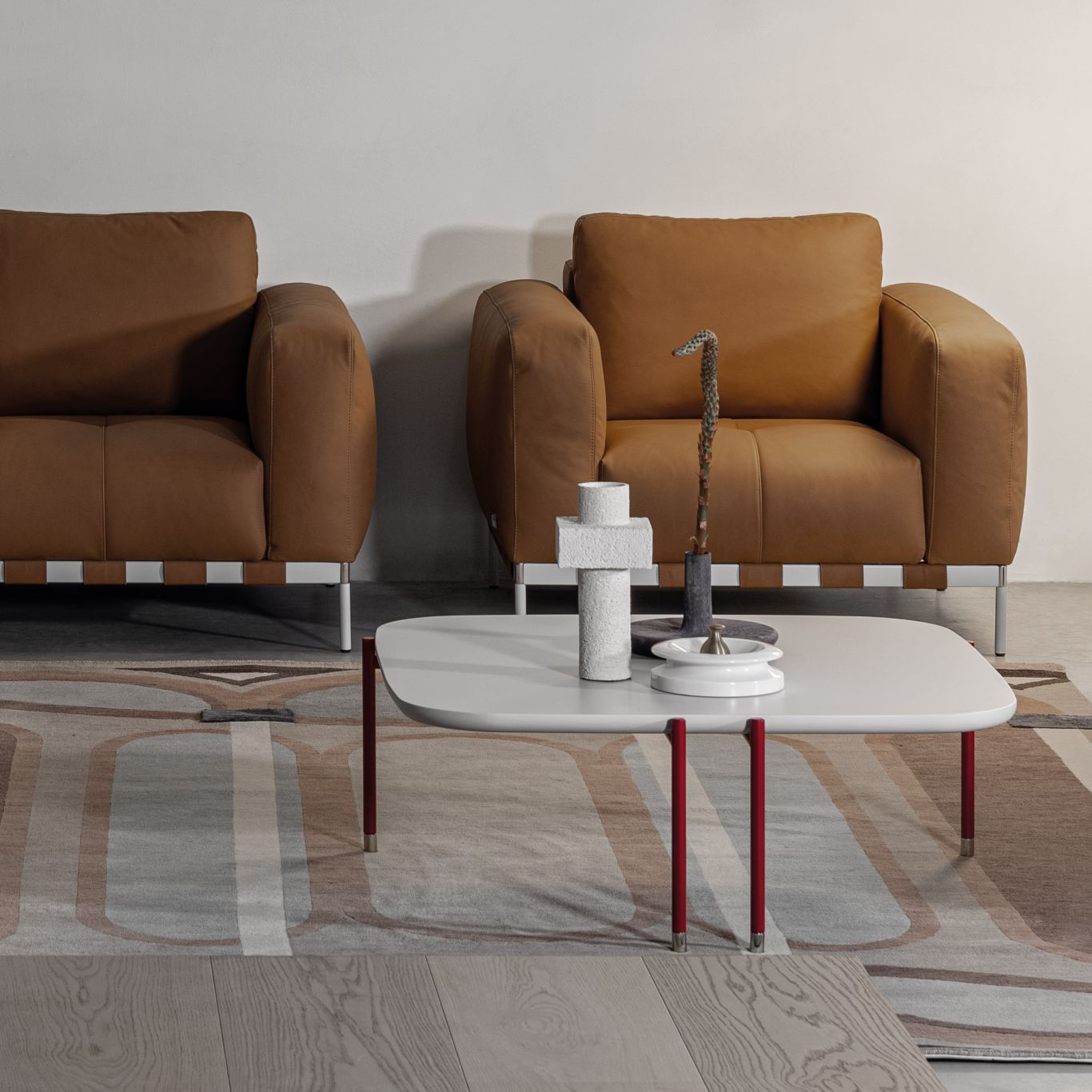 Tavolini leggeri, disponibili in due dimensioni e forme. Il top laccato opaco, disponibile in 7 colori, è fissato al telaio, le sottili gambe sono impreziosite da terminali cromati nelle finiture Standard, Nero e Oro. Tutto soddisfa il bisogno di spazio e il gusto estetico grazie a materiali sostenibili, per costruire gli ambienti del futuro.