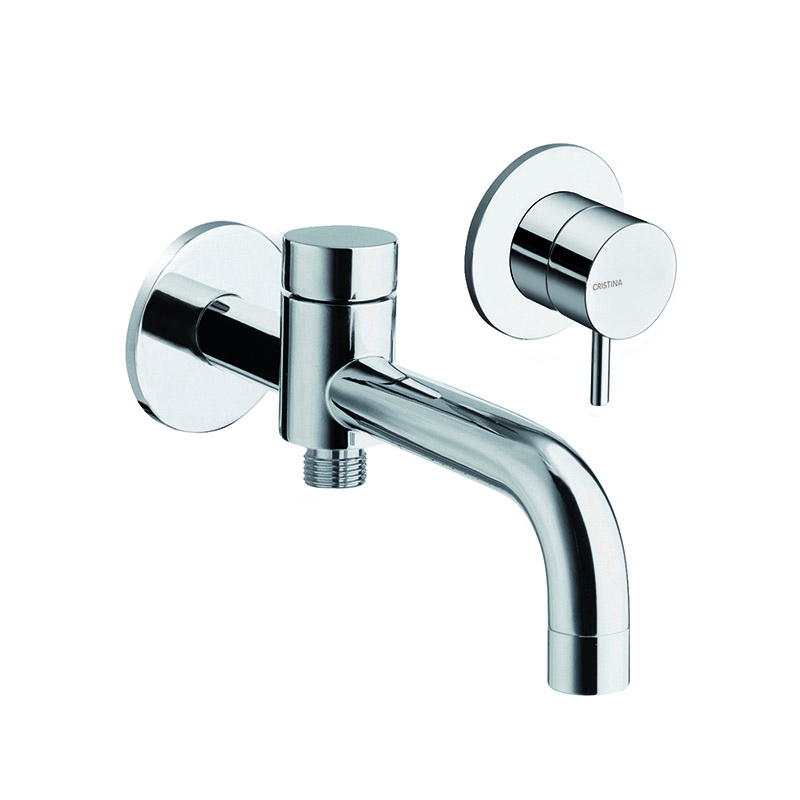 Single-control wall-mounted external set for bathtub, with mechanical mixing, automatic diverter with 2 outlets. For completion with recessed part CRICS200 (RH) / CRICS201 (LH)