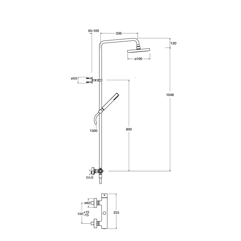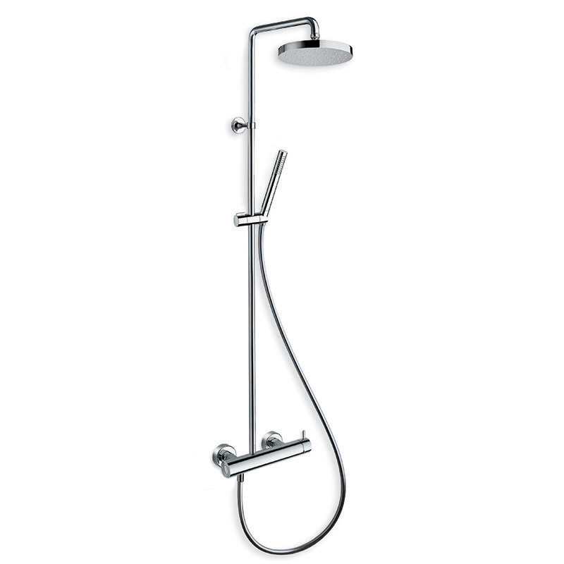 Wall-mounted shower column, with mechanical mixing, automatic diverter with 2 outlets. Anti-scale rain effect showerhead ?190 mm, adjustable arm, anti-scale mini showerhead with sliding support and long-life hose