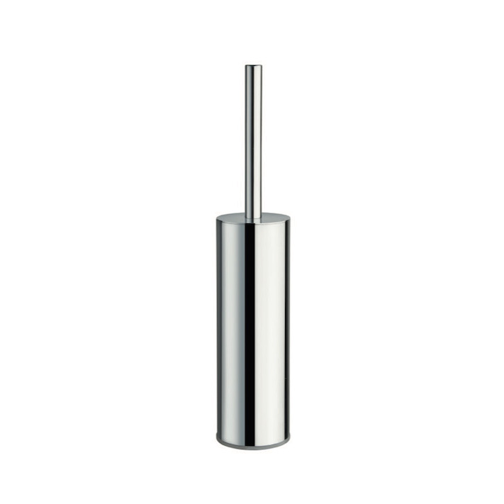 Round floor-standing toilet brush holder with removable drip cup made of thermoplastic material