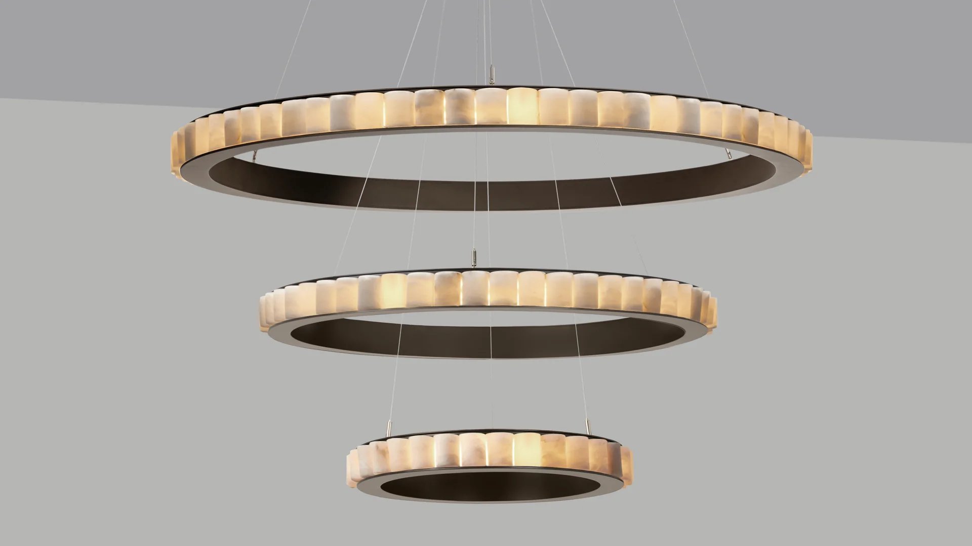 Inspired by the legendary island, from where mystical stories of light and shadows have enchanted the world for centuries, AVALON showcases cascades of light emanating from a precious ring of alabaster, encapsulated in brass or bronze creating an exquisite illumination.