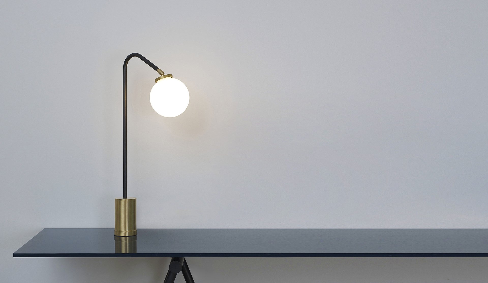 An elegant contemporary light, this sculptural light is both modern and retro. The base is machined from a solid brass block and is reassuringly heavy. The opal glass spheres emit an even light making it perfect for desks, bedsides and side tables.