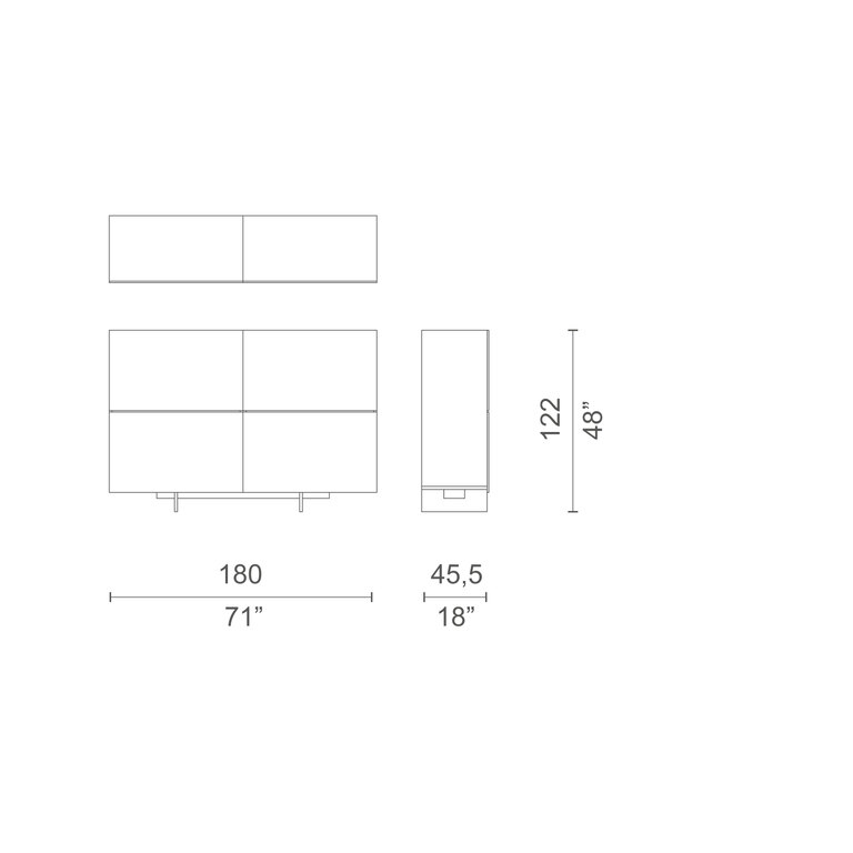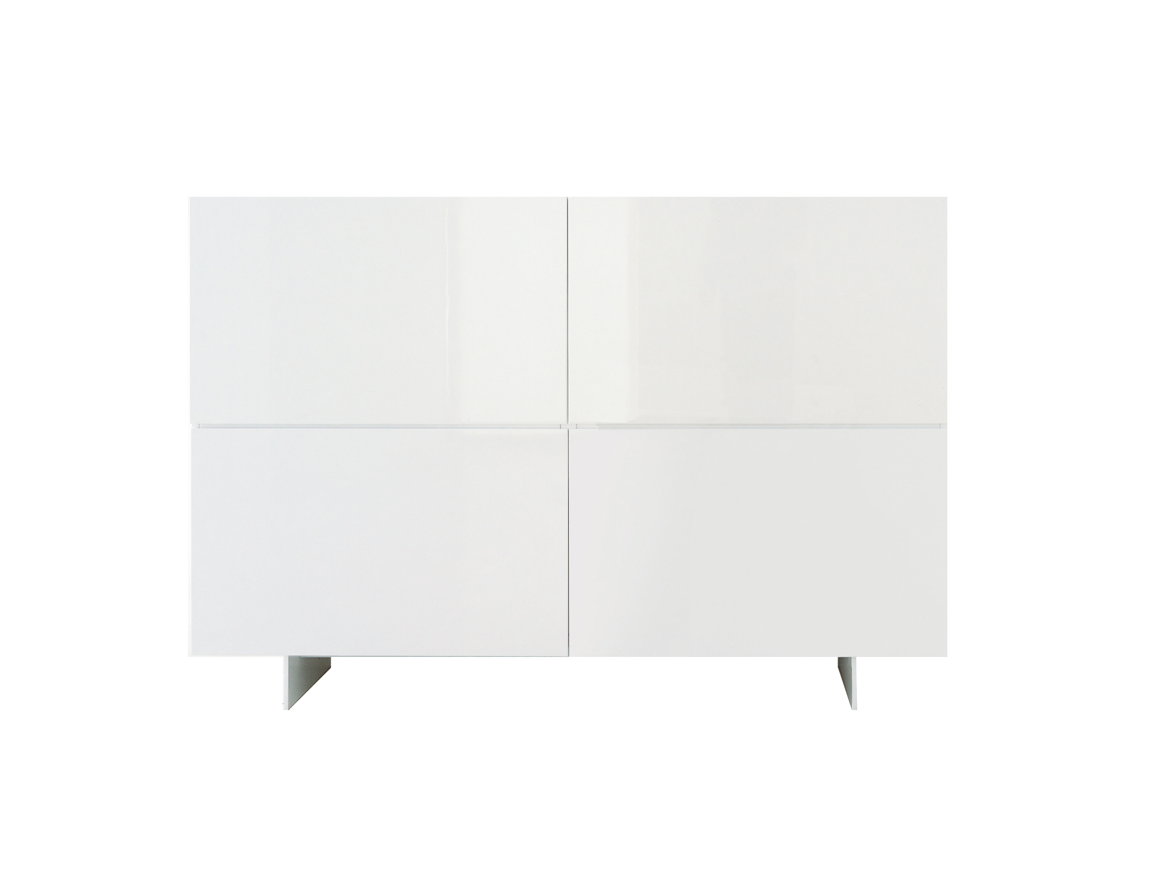 The Uni cabinet series by Piero Lissoni, defined by large volumes and an extremely geometric and rigorous design, further expands with the addition of two brand new wall-mounted models with three drawers or three leaf doors. For all models the structure is made of medium-density conglomerate wood, equipped with aluminium-lined poplar plywood hinged-doors and drawers, with minimum thickness. For the free-standing version, the base panels are made of thick laminate with a metal frame for support. All cabinets come with a matte or glossy finish in the colours of the collection.