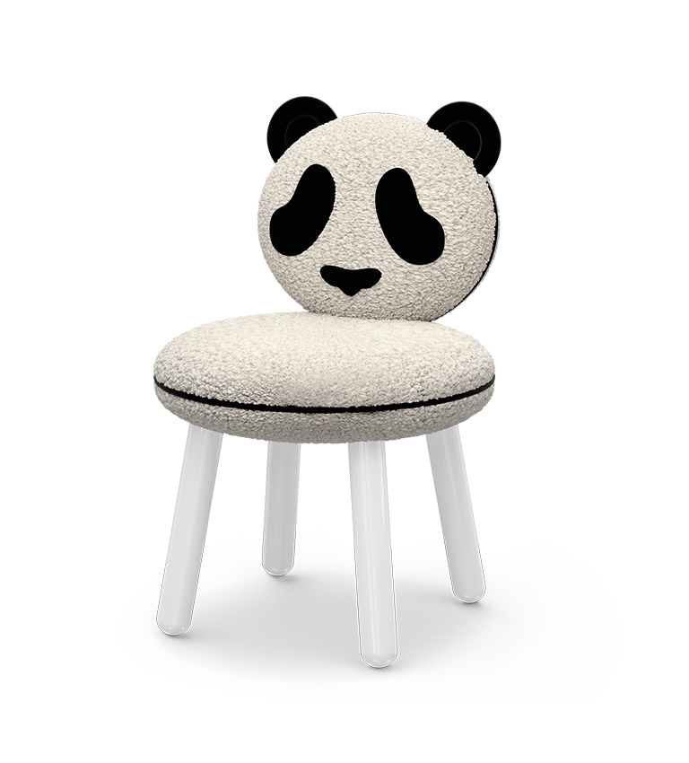 Pandas are arguably the cutest and most adorable animals on the planet. Their extreme fluffiness is so captivating that we tend to always associate pandas with happiness, joy, and love. One of the most famous Pandas in animated movies is the clumsy, lovable, and unlikely hero Po, from "Kung Fu Panda". Po is a giant panda, who dreams of becoming a skilled martial artist. The story follows Po's journey of self-discovery as he learns about the true meaning of kung fu and the importance of inner strength and belief in oneself. Po inspired this super fluffy animal-themed chair that celebrates a tale of courage, perseverance, and the power of believing in oneself.