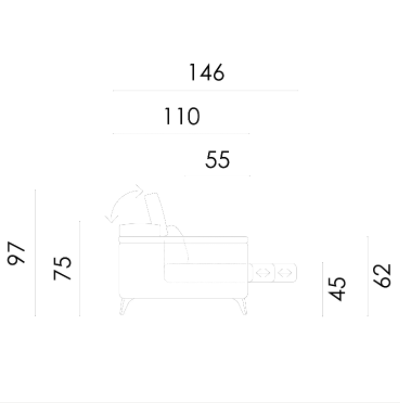MARTIN is a tribute to Hollywood atmospheres and classic shapes redesigned for contemporary living. Removable, completely customisable in the colour of the feet and in the headrest and seat mechanisms, it is the perfect piece of furniture to complete a living room dedicated to welcoming and sharing.