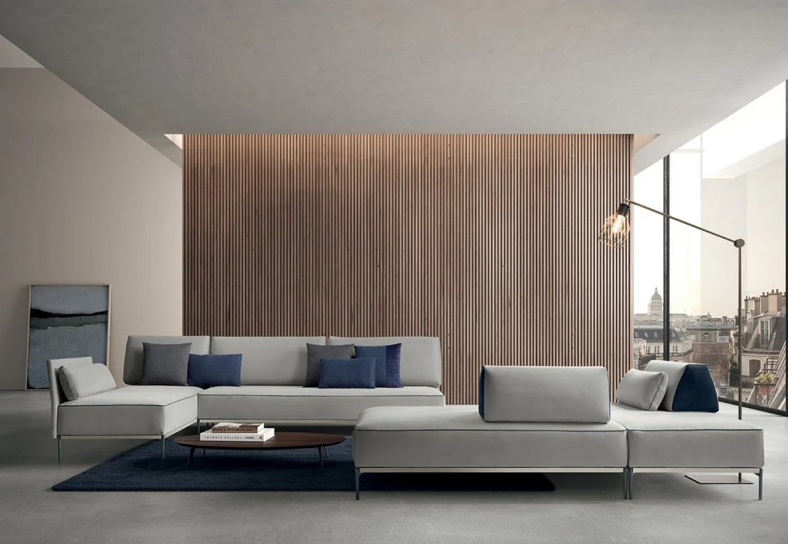 A modular system dedicated to comfort and style that adapts to all spaces. The essential and welcoming lines are emphasised by the adoption of feet that lift the structure off the ground, giving impetus to all possible configurations that can be created.
