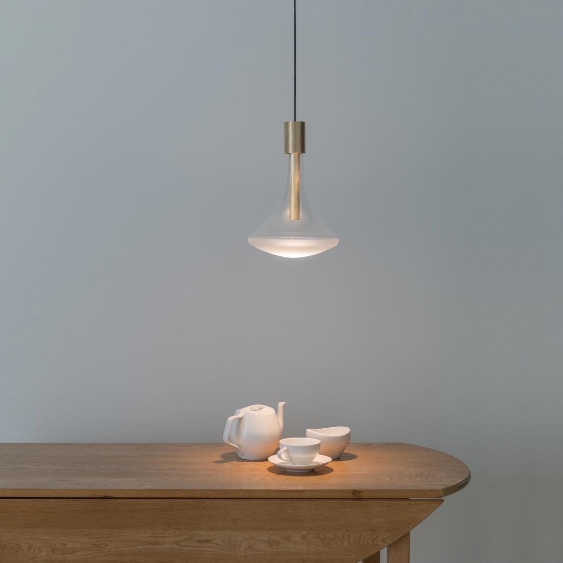 The shape brings to mind a light bulb that was never born. Think steampunk: situations in which instruments were inspired by the rudiments of electricity. The classic light bulb that has no future becomes a wonderful device made of luminous diodes. What would the past have looked like if the future had arrived first?