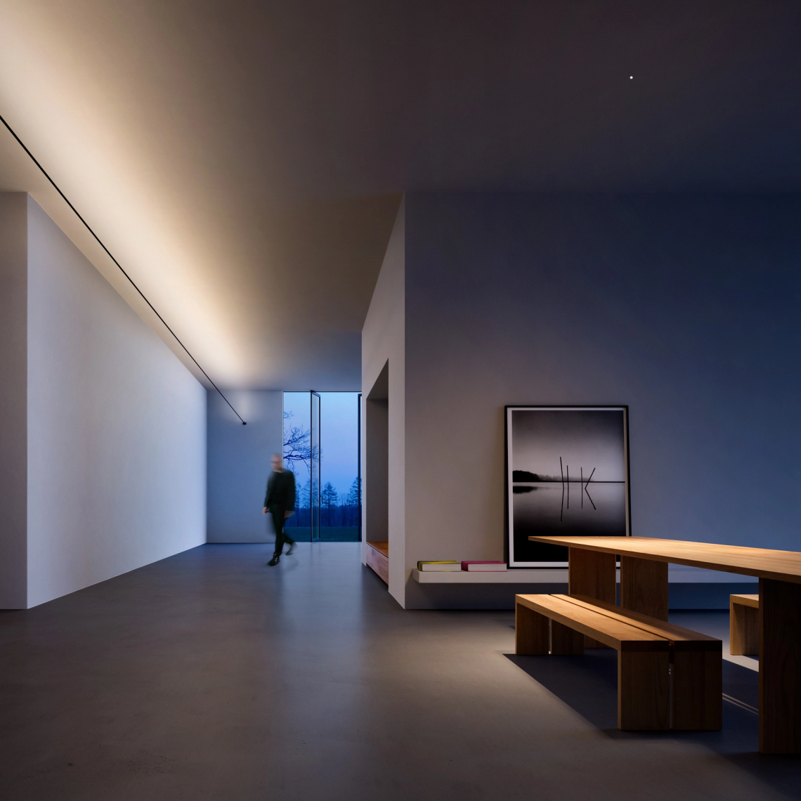 The graphic force of this system is surprising. It can be integrated into space, but at the same time it becomes part of that space. Infinito: essence and absence.