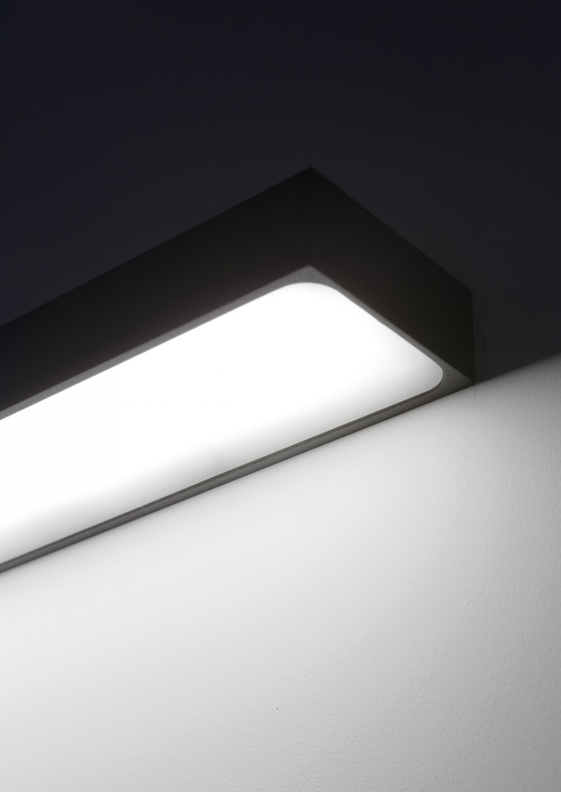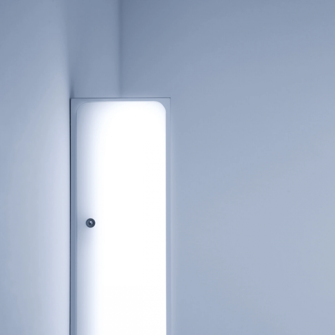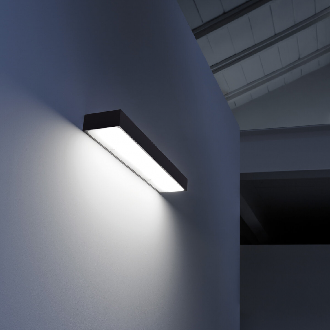 The luminaire is pure form, a simple container for the light source. Single-emission lamp with light directed downwards. Light is incorporated into the space, becoming an architectural element.