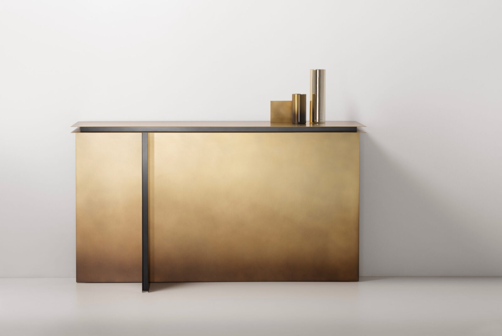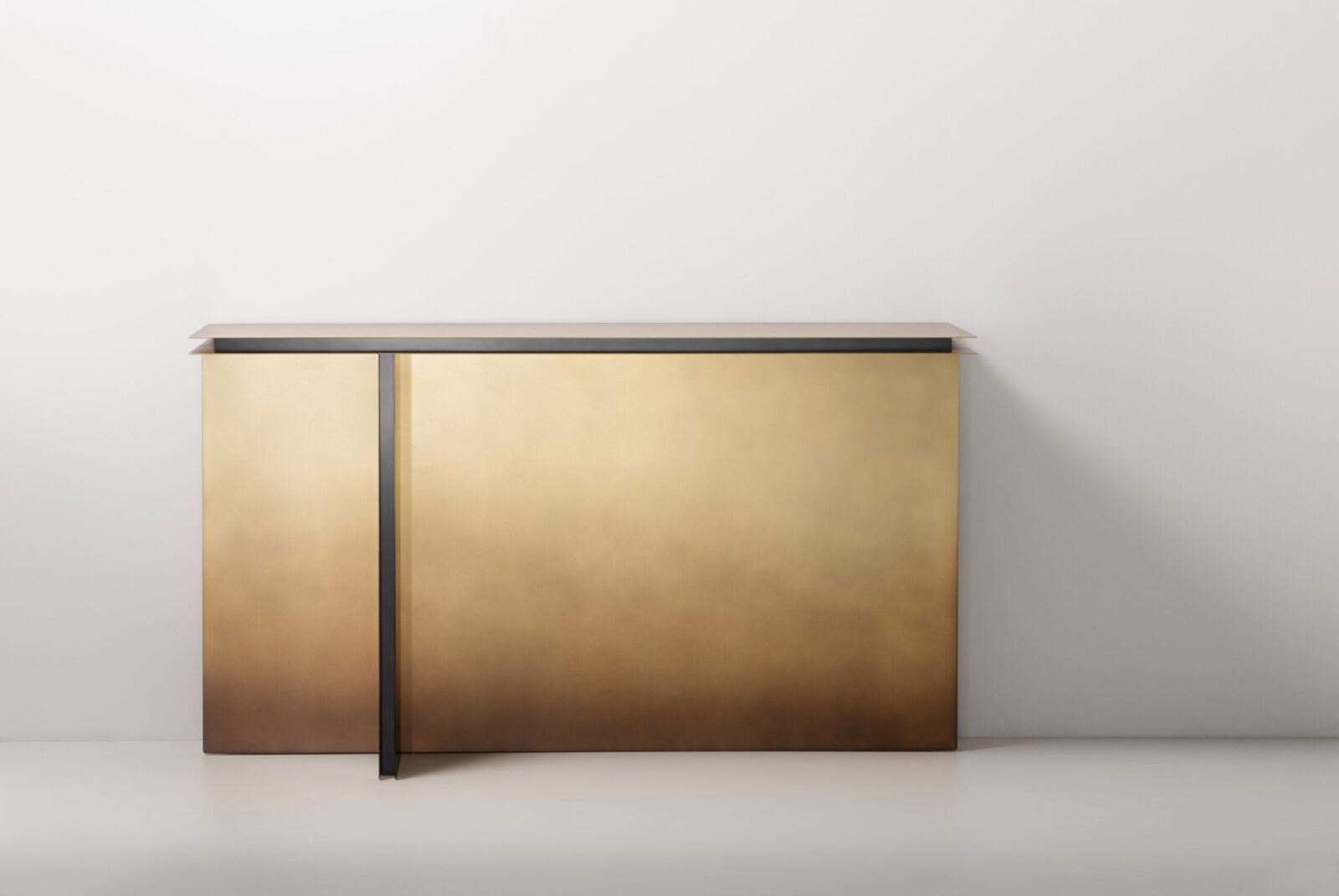 Una presenza scenica tanto semplice quanto audace definisce la consolle Folio, realizzata con lastre di metallo in spessore poste su piani paralleli, esclusivo linguaggio progettuale per definire sia il basamento che il top. Un segno grafico e tridimensionale a “T” si delinea sulla lastra di fondo creando un volume compatto e preciso, dove i pieni e i vuoti giocano con massima eleganza. Ideale per arredare e creare un piano d’appoggio anche in luoghi stretti come ingressi e corridoi, trova sua naturale applicazione anche in contesti retail, hospitality e contract.