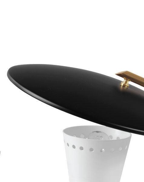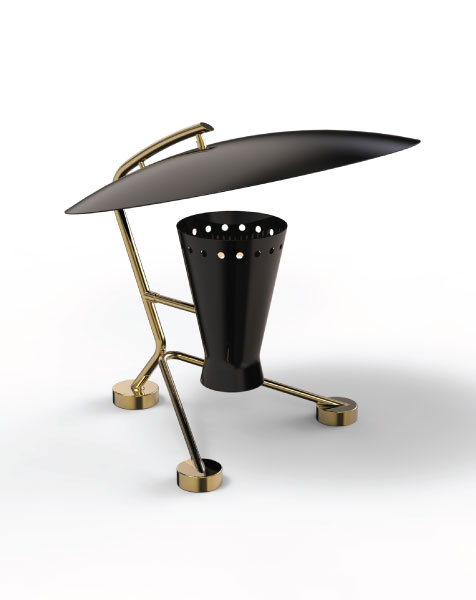 Representing everything that a tripod table lamp should be, Barry mid-century desk lamp is a handmade piece produced in Portugal by some of the finest artisans in the business. This brass lighting design features a shade and a top cover made of aluminum, top coated in matte black and matte white, which can be customized. The shade has a nickel plated finish, emphasizing the contemporaneity of this fine bedroom table lamp. Going as high as 13’, this is a fantastic task and reading light for bed.