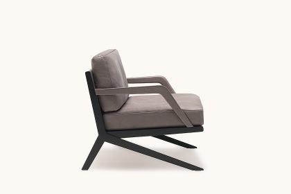 設計師的靈感來自于“回旋鏢”大膽而優雅的設計線條。修長、靈動的設計非常適合現代或古典優雅的客廳。復雜的手工制作細節,包括表面可見的裝飾性接縫和由皮革覆蓋的扶手,增加了產品的優雅性。其不銹鋼的框架,反襯出皮革的柔和皺折線條,展現出此款產品更加隨意自如的設計外觀。