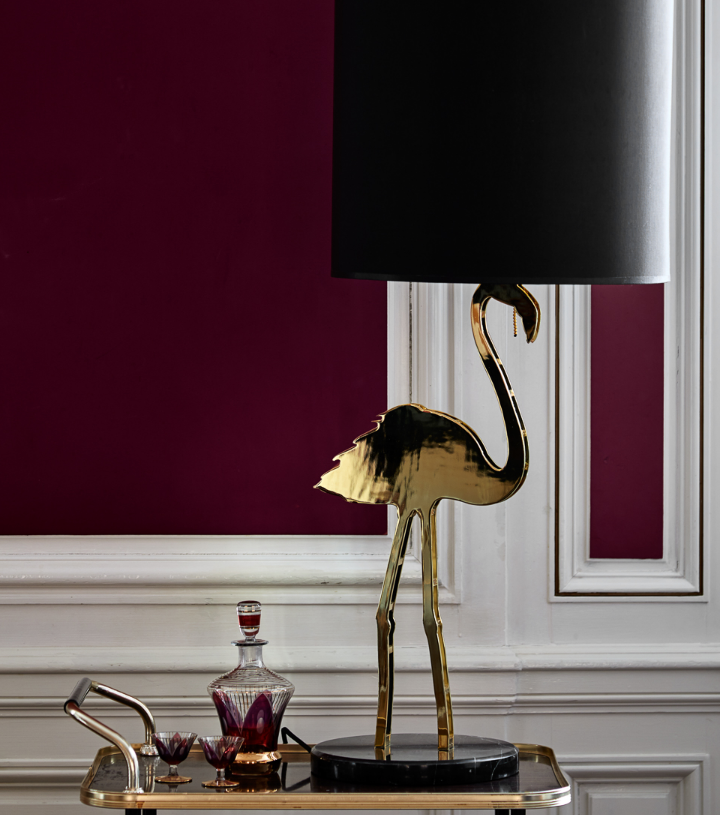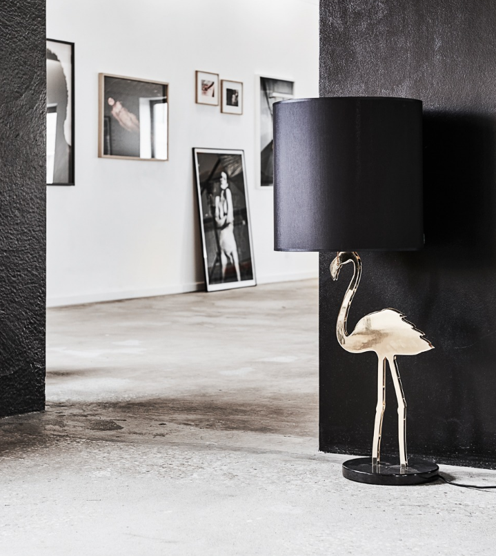 This lamp speaks for itself and steals the moment. The Crazy Flamingo table lamp is made of gold plated metal on a black marble foot. The black shade with gold lining is handmade in Denmark.