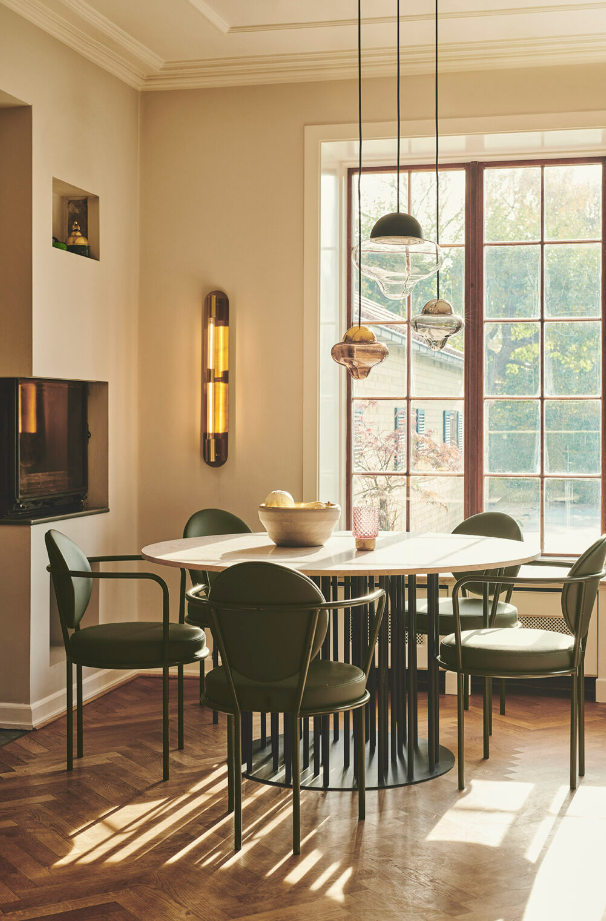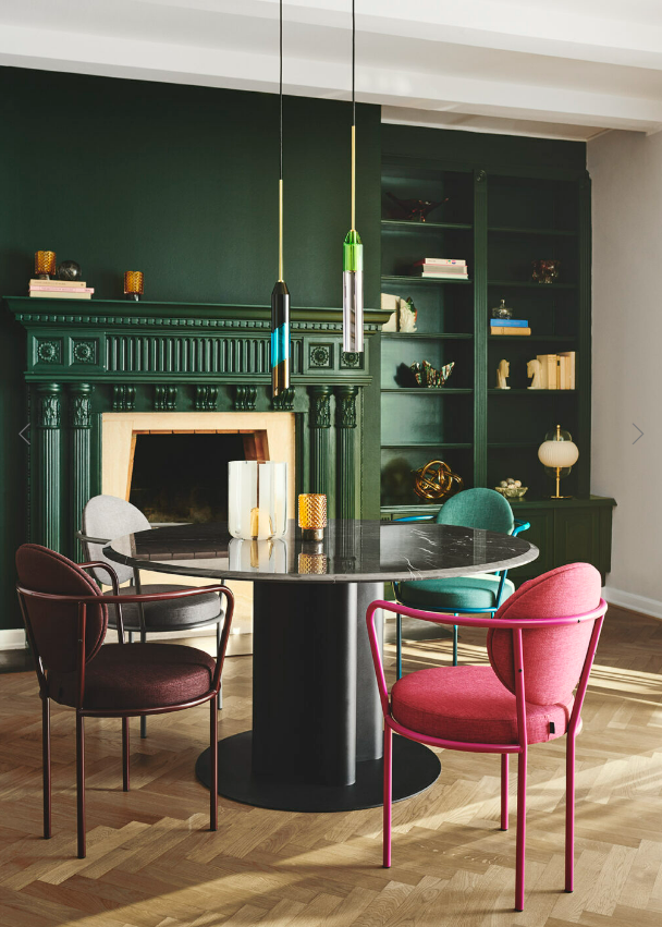 The Casablanca Chair is designed for long dinners, as you sit amazingly well in the chair with a soft backrest that matches the seat. The frame is made of coated metal, the seat and backrest are made of leather, wool, velvet or polyester. That being said – Casablanca can be customized as you prefer and we offer several types of upholstery and frame colors. The dining chair is made in Denmark.