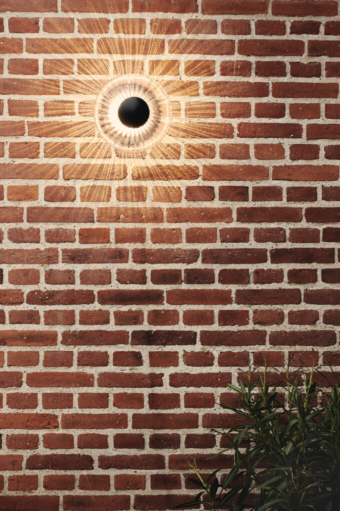 Why keep all the great lamps indoor? The iconic New Wave Optic Wall Lamp is now available in an outdoor version too. The mouth blown wavy glass will work its wonders by creating an illuminating experience on any outdoor wall.