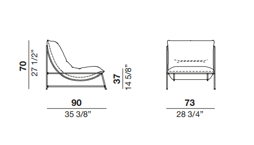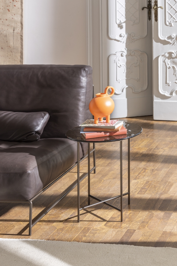 Rito has a lightweight, metal rod structure with clean-cut lines that contrasts with and accommodates the soft, generously-sized cushions that give this model an elegant, cosy designer look. Rito’s covers are removable and come in leather or fabric in a wide range of colours.