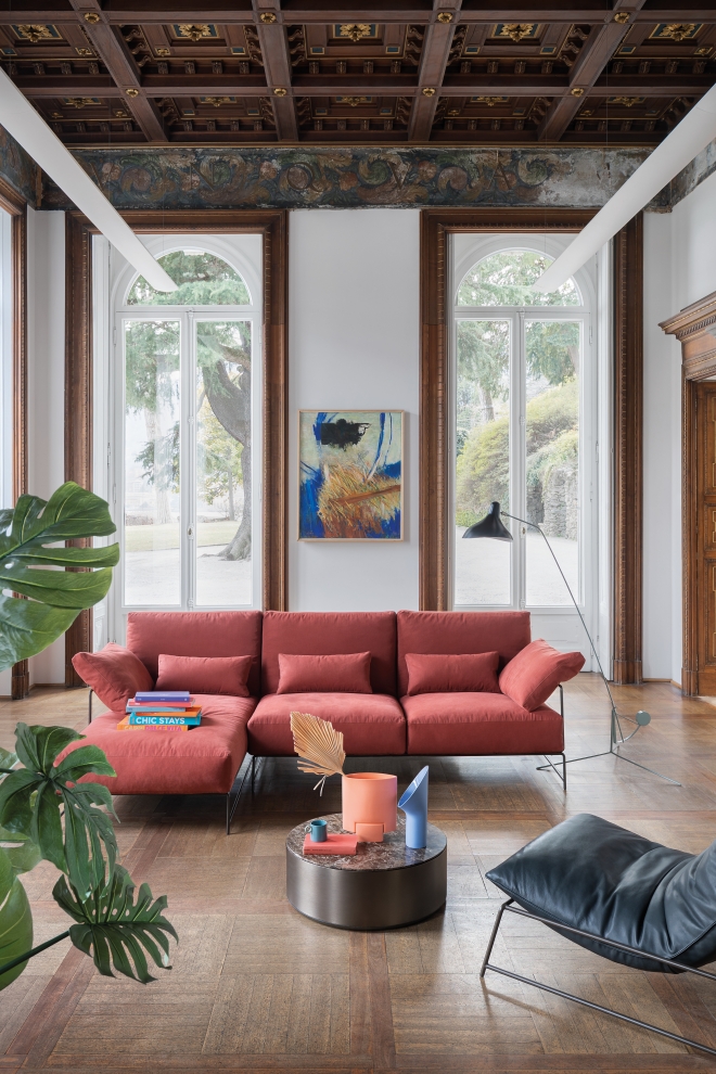 The Rito collection, which began with the iconic easy chair designed by Matteo Thun & Antonio Rodriguez, now includes a sofa.The sofa has become one of the hubs of the home, a place where the whole family can meet or where you can chat with friends; but it can even become a private place to work, read or relax on. The deep and comfortable seat, the lumbar cushions, the chaise longue and the coffee table option turn the Rito sofa into a wellness haven that can even be positioned in the middle of the room.
