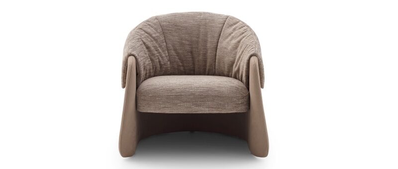 Una felice e armoniosa sovrapposizione di materiali tra loro diversi rimanda alla caratteristica forma del risvolto di un abito. Blazer è una poltroncina elegante, dalle dimensioni compatte e dalle proporzioni bilanciate, personalizzabile in più rivestimenti a scelta tra pelle e tessuto.