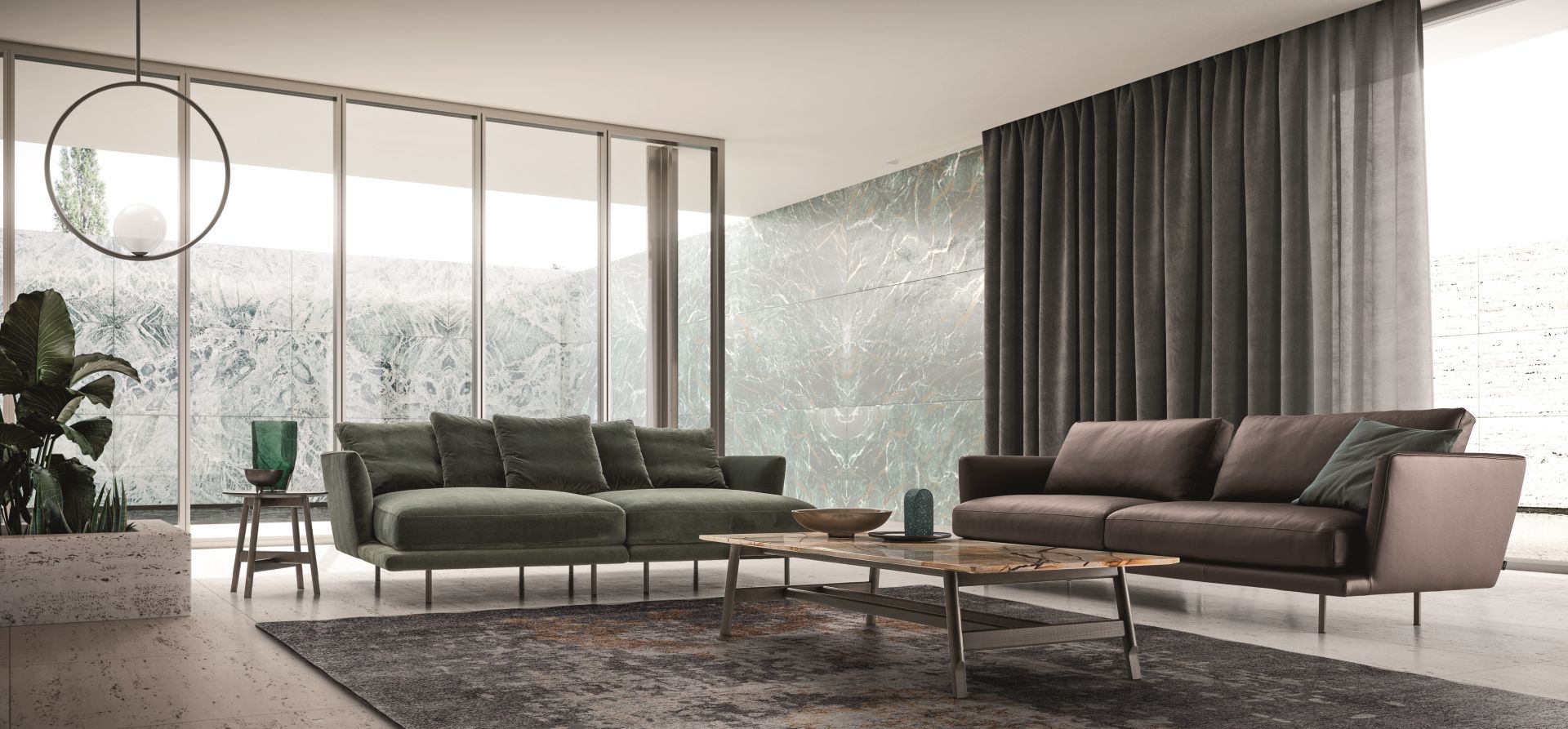 Royal is inspired by the world of fashion and interior decoration and is available in two versions distinguished by different backrest cushions: in the first case, the cushions are as wide as the seat while lots of small back cushions define the second option.