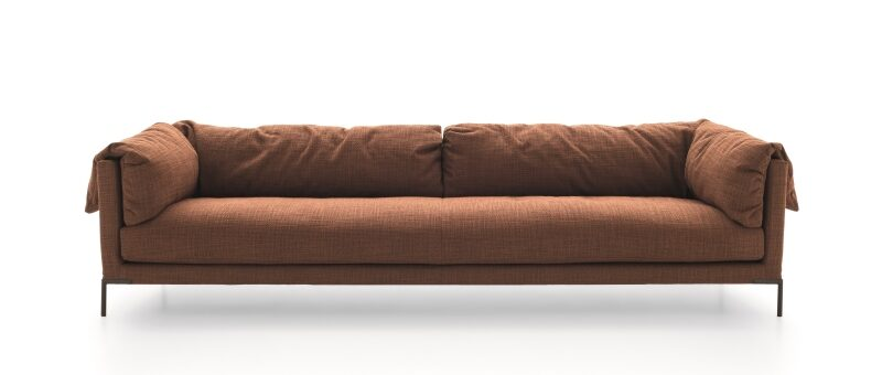 Il divano Drop si ispira all’idea di lasciar cadere sulla seduta un abito o una giacca facendolo diventare imbottitura. Il tessuto della seduta e dello schienale è dunque già stropicciato e disordinatamente poggia su una struttura rigorosa che assicura il contenimento. Proprio come farebbe una poltrona in camera su cui gettiamo un abito.