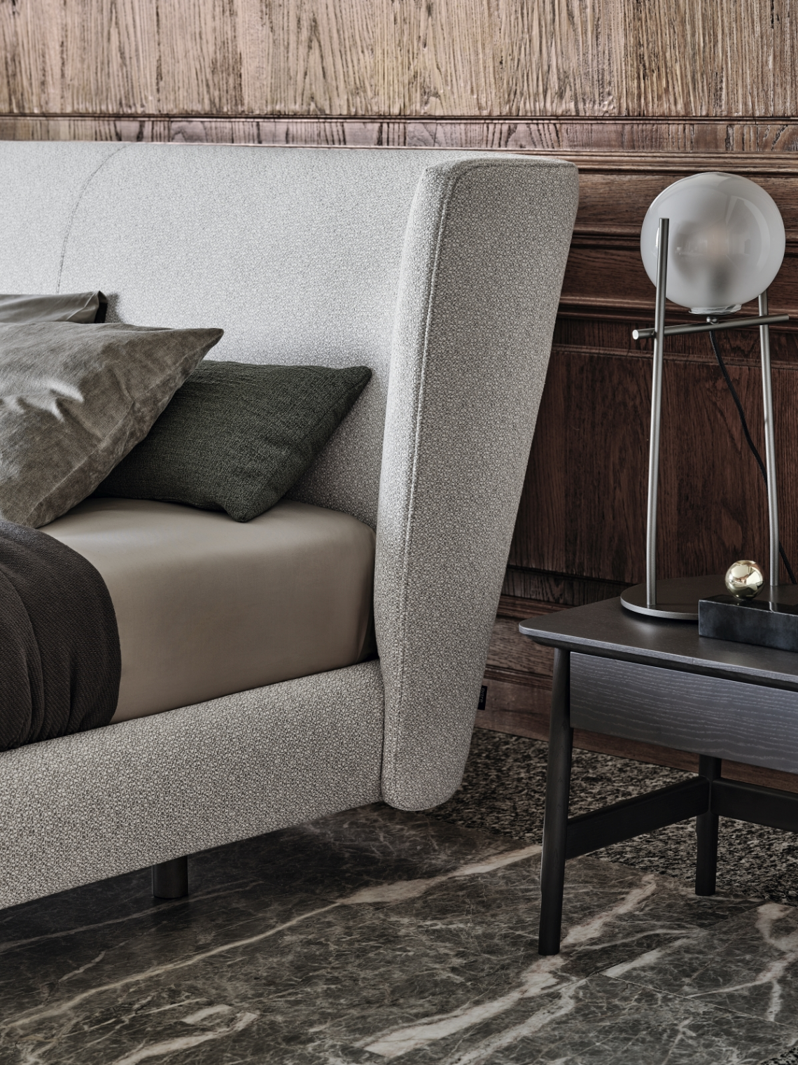 Timeless è la chiave per apprezzare Royal. Un gioco di proporzioni reinterpretate, giocate su un apparente sospensione da terra rendono questo letto un oggetto elegante e contemporaneo.