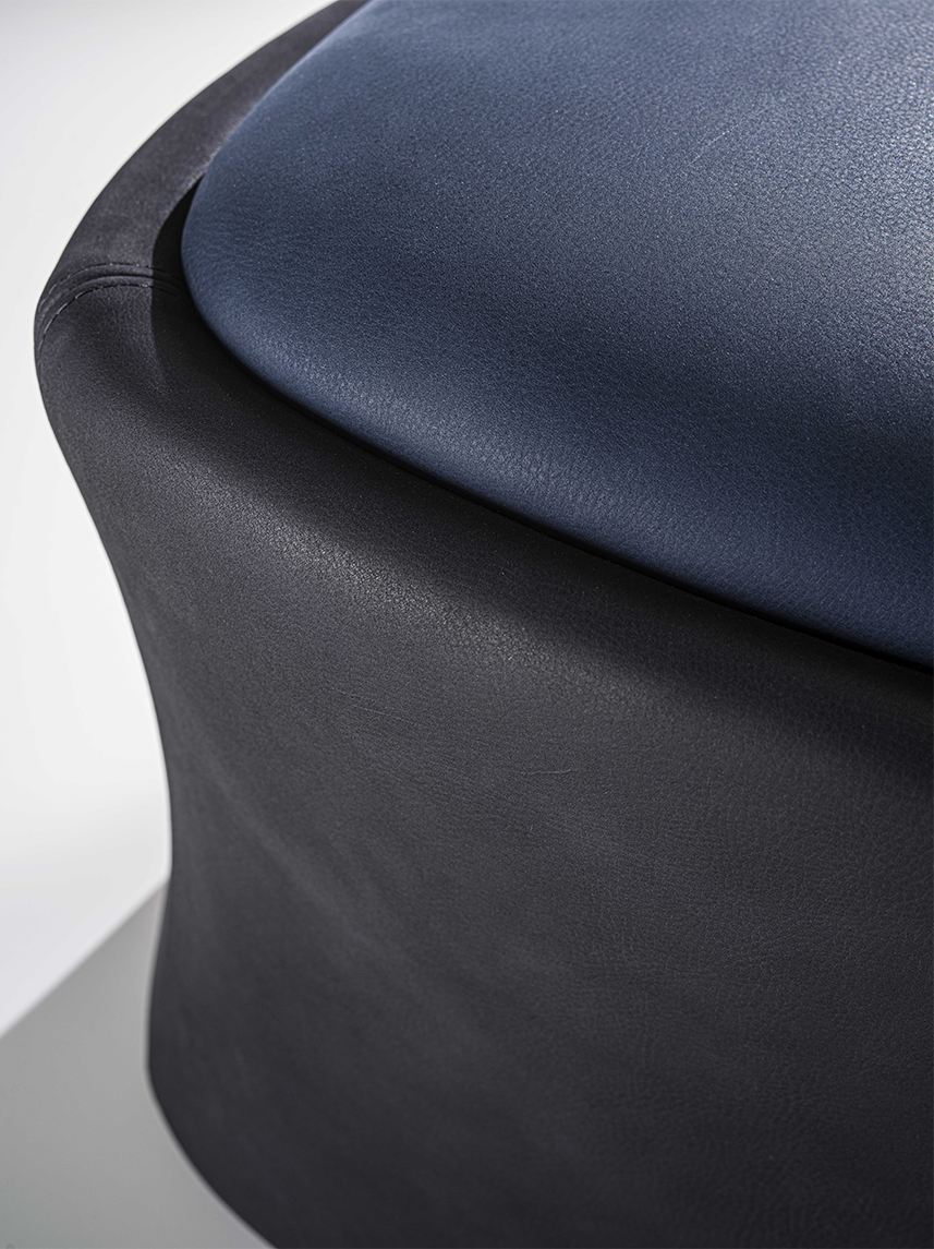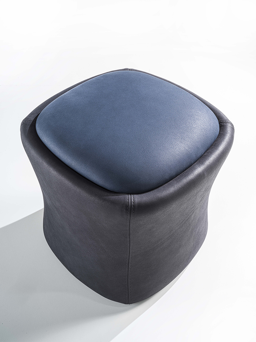 Pouf with soft shapes characterized by elegant leather with detailed seams, capable of integrating with any type of environment